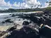 Parts of this beach are rocky, with black rocks but I find it to be incredibly beautiful, as Hawaii is the only place I have seen beaches like this. This beach is tucked away, it took us a little bit to find parking to walk down. There is a large swim beach area that we could see, that didn't look like it had as many rocks.