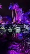 This is kind of a deceptive maneuver bu the boatnical gardens. Call it night lights, but using the word lights and scheduling this event in Christmas season, and most visitors pay a premium on normal admission expecting like other venues around the country at this time of year, a light show will be Christmas themed. The event is anything but Christmas related, and although the lights are pretty, after about 100 feet of it, its completely more of the same with colored lights illuminating plants and trees. There was a singer, who appeared to be singing to a karaoke machine, and whose someone you would find in an almost empty saloon, spewing out songs to 70s pop classics. All that was missing was the stench of stale beer and pretzel crumbs on the bar.