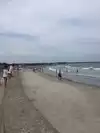 Nice family beach has snack/food concession stand. Lifeguards were very intensive on all swimmers and several rescued because on under tow and strong waves because of off shore storm. Great beach.
