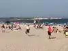 Super beach! Great waves for boogie boarding. Surf lessons available from local surf shop. Get to town early for free parking on the street. Good facilities that are cleaned regularly. Lots of lifeguards. No dogs. No alcohol. No smoking. No boom boxes -- good for families. You can bring food in but beware the seagulls - they are very aggressive. Free admission later in the afternoon/evening after staff goes home and facilities close.