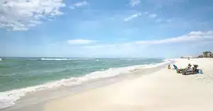 White sand, clear waters, plenty of parking and not as crowded as Destin or Pensacola. Visit to see the blue-green waves softly crash around your feet as you walk along the white-sand beach.