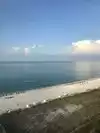 White sandy beaches... very quiet most times of the day. If you walk across the pier, you may spot a dolphin or two!