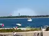 Beautiful beach! Visited in late April and the water was gorgeous -- no seaweed, no algae, no jellyfish -- just some windy, choppy waters. Bathrooms are maintained enough and lifeguards are present and very friendly. Already looking forward to returning again!