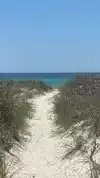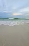 Pretty beach with nice dunes. Sand is so fine it squeaks when you walk on it. Water can be super calm and waves are almost non-existent. If the winds pick up though, surf can be rough.