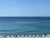 White sand, blue water. Beautiful scenery. Not too crowded. Several companies to provide beach chairs and umbrellas if you need them.