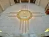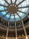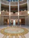 Be sure to check out the state seal on the floor in the rotunda area and look up to see the colorful ceiling skylight. One of the details mentioned is the travertine marble which is actually local to New Mexico.