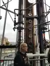 Our daughter treated us to distillery tour at New Riff and it was an absolute hoot! Our guide has worked at New Riff since it opened and was incredibly knowledgeable about all aspects of distilling as well as incredibly personable. From the ground-floor introduction, we went up one flight to the fermenting rooms and got to see 6000 gallon barrels of whiskey, which initially starts as beer, at different stages of the fermentation process. The newest, least fermented batch was hot and bubbling, which really surprised me! Then we got to see the six story still, an amazing construction of copper, and learned how the natural aquifer beneath New Rid