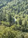 A scenic mountain road that takes you through towering forests, along streams, past hiking trails and to towering overlooks. A beautiful mountain drive.