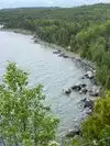 We are on a US road trip, and stayed two nights in Duluth, so we could be in good position to do the Duluth to Grand Portage, MN North Shore Scenic Drive and back. We do not understand what others have seen as so great about this drive. All it was was an asphalt road with trees on both sides; 90% of the time, we did not see any water views. When we did get to see the water, it was pretty much enshrouded with fog, which a staff person in the Grand Portage National Monument said is not that uncommon at Lake Superior. We did stop to see the Gooseberry Falls; they were OK, but not much water volume was going over them. We saw the view of the Split Rock lighthouse, but the scenic viewpoint for it was so far away, we could not get a good photo of it. We paid the $5 parking fee to see Sugar Cove Beach; that was probably the most interesting stop, because it had a pretty trail, there’s a lot of history to the area, and it did lead to a beach. We went through towns like Beaver Bay and Grand Marais; we have much cuter towns in our home state. We had read that a backdrop of the shore is the Sawtooth Mountains; only a few times did we see anything that looked like a mountain on this drive. The rural road we live on at home is much more scenic than this drive. We were very disappointed. Perhaps in the fall, when the leaves are turning, there is a benefit to seeing mile after mile of trees along an asphalt road.