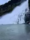 We were on an Alaskan cruise with a large group so we wanted some cool but cost effective things to see while in port. The nugget waterfall and Mendenhall glacier were absolutely amazing and one of our most favorite things of the trip. It is also in the same location as the visitor center and the Mendenhall glacier. From the cruise port, we took a free shuttle to the drop off location which was a bunch of booth vendors selling excursions. They were charging $40 per person to take you to see the glacier (not sure if they allotted enough time to see the falls up close). We walked less than a quarter of a mile to the city bus stop from that point. You can take line 3, 4, or 8 (8 is an express bus that only runs during rush hour times) for $2 a person if 18+ or $1 if under 18. HAVE EXACT CHANGE/CASH. They will not make change for you. We were dropped off at the dredge lake road exit and walked 1.5 miles to the glacier. If you let the drivers know where you are going, they are really good about telling you when to get off. The walk was quick and completely worth it as you see some beautiful scenery and rainforest along the way. There is a $5 per person entry fee to get into the park. It is a short walk to see the glacier with a lookout point where you can get pictures. If you want to continue on, there is a path to the falls with good signage. It is 2 miles round trip to get to the falls. The buses run every 30 minutes. On the way back to the stop, we took the steep creek trail (just the smallest loop which probably added 8 extra minutes (the steep creek trail is a couple of hours if you do the whole thing). Plan on about 5 hours to see the glacier, falls, visitor center, and travel time. We walked around 6 miles total on flat, well maintained paths/roads to do the excursion this way. Totally worth it!