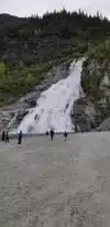 This is located adjacent to the Mendenhall Glacier, so you can approach both by walking toward the falls.It's a decent walk there. For me, going back was difficult, as we had limited time to get back and I was struggling at the end. Ideally, plan to spend several hours here and enjoy the Visitor Center and other trails in the park. he falls themselves are v ery nice! There are too many people there, but it was very nice anyway.
