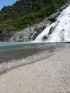 Realtively easy walk/hike from parking lot to the bottom of the falls. It is impressive to see and hear from so close this massive and powerful waterfall. And the glacier is just off to the side in the distance. The water is beautiful and serene too.