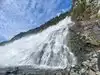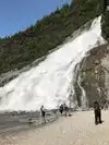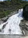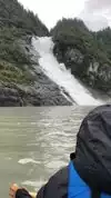 We visited Nugget Falls as part of our 3-hr cruise excursion to Mendenhall Glacier in Juneau in June. The whole visit was absolutely enjoyable and the whole place was awesome. The features in the area - the mountains, the glacier, the falls, the trails, the forest, the visitor center and the bay (Auk) are absolutely gorgeous. The hike to Nugget Falls from the visitor center was an easy walk on a well maintained trail (about a mile one way). There was tremendous water flow over the falls and the cold spray spread far and wide. The glacier is right next to the waterfall, though only partly in view. One will get a fuller view of the glacier from the short Photo Point trail. Nugget Falls should not be missed while visiting Juneau.
