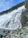 nice and easy hike for older and younger family members. the view was gorgeous at the bottom of the glacier and falls.