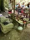 Price is $20 per adult You wait with a group under a large shelter. Each group appeared to be 15-20 people. A tour guide, who was dressed (supposedly) in authentic attire would guide to each history station and tell the history behind each. Our guide could not tell our group time periods that went with each different thing he was talking about. The people doing the demonstration did not talk and you could not see what or how they were making each thing very good. On several exhibits, there was no one demonstrating their craft or era. The whole process took about an hour. They could have an interesting exhibit if they would put more thought into the process with offering more detail per station. I suspect others have felt the same way since there was a sign st the beginning that station refunds.