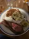 Great atmosphere. Friendly staff. Brisket was so soft and tender. Fork cut right through it. Bbq saucy was average and tangy. My husband had the beans and rice with his. He said it was good and used the bbq sauce on it instead of brisket. I enjoyed mashed potatoes with mine. Great food!!!
