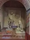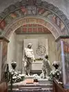 It is a peaceful place, with its old cloister transformed into a garden. The visit is a little expensive ($15) and goes quickly. But the church rebuilt following 2 earthquakes is interesting because the original colors and decorations have been respected. A magnificent tree in the middle of the cemetery, behind the church. Too bad it was gray when we visited.