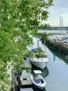 Lots of docked yachts, both sail and power. Floating concrete docks and a hub of activity around. Very nice downtown area.