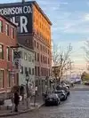 This district has stores and restaurants, a lot of local color with older buildings and streets with pavers (not cobbles....). You don't want to wear heels while walking around this district. Available street parking and some lots. Don't let the meter run out, as they do ticket aggressively.