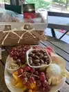 Relaxing Friday afternoon! The picnic basket is very nice, two different kinds of cheese, salami, bread,crackers, olives,grapes, and cookies. Served in a fun red/white gingham basket. Not to mention a large pitcher of iced water, the souvenir cups are nice... Just purchase a bottle or two of wine to enjoy with the picnic. The covered patio and view is very relaxing!!