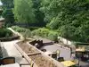 The site reminds me of a limestone quarry with plentiful shade, tables, and quiet areas.