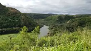 Across the road, there is another viewpoint, down into the Wailua River Valley, at a particularly picturesque bend.