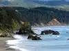 Thought we'd see some beautiful coastline heading from Coos Bay up the coast but felt like we were back in a forest most of the time with trees on both sides of the road. When it did open up, we saw some beautiful rock formations, etc., just not what we expected.