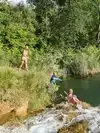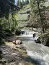 Beautiful easy hike with shaded and sunny spots. There are many little pools and cascades that kids and adults can play in. The path is narrow 2 people walking shoulder to shoulder at some spots. There are benches and picnic tables along the hike and near the water so you could bring a picnic lunch and let the kids play in the water all day.