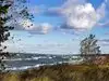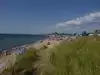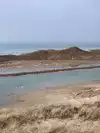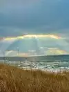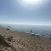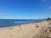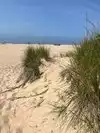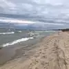 Beautiful beach with dunes! We took a picnic and watched swimmers and 2 surfers. Water had white caps.