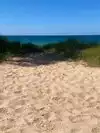 A nice Michigan lake beach with nice sand. Personally I think this beach is just a touch overrated. The beaches in Traverse city and surrounding are just as nice and less crowded. Not much natural shade so you really need to haul your own in. My husband and I walked from town (took the ferry across) and hiked up the trail and brought lunch. We didn't spend a lot of time there with the droves of people and lack of shade.