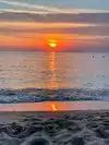 Beautiful beach! Clear, clean water. The main beach is crowded but that’s a beach for you. If you go either way from the main beach you get a stretch of beach with dunes behind you. Little more secluded. Great place to play for the day or watch the sunset!
