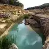 The water is crystal clear blue, a beauty as you walk to it from the short, steep hike down to get there. The park is free entry and bathrooms are available at the entrance.