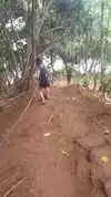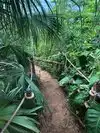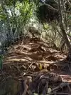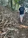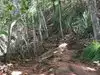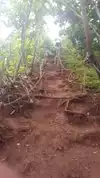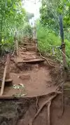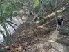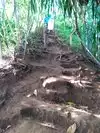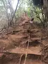 Steep and muddy trail with ropes for safety and support. Not too bad but have hands available.