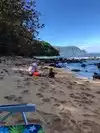 Best condos in Kauai are right above this beach. Puu Poa complex and the best of them all is unit 412. We stayed there and it's amazing!!! Pack a beach chair and some snorkeling gear on your back,walk past PuuPoa condos and the small trail is on your right. Don't sweat the decent down with the help of rope. If your in fair shape you'll do it no problem. Older or unfit folks shouldn't attempt it. Remember whatever you pack down has to come back up. The beach has amazing views of Bali hi and offers some incredible snorkeling with a huge variety of fish and if lucky some big sea turtles. We went here every day and never saw more than 10 people. Use caution and wear a water shoe or sneakers that will get muddy on way up and down. The beach has perfect sand and plenty of shade trees that umbrella the shoreline.