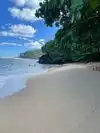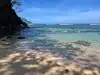 Warning - treacherous path required to reach the beach (slippery, muddy, not maintained). Requires sturdy shoes and 2 free hands to use the ropes provided. Pretty beach with ok snorkeling (tunnels much better). No facilities byo snacks and water.