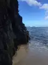 Difficult to find the trail and parking, unless you go valet at the St. Regis Hotel. Very steep trail with ropes to hang onto (not recommended if trail is muddy from rain unless you are a thrill seeker). The beautiful water, sand, trees, and lava rock edges on a small beach make this a worthwhile visit.
