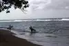 Right around the bend from this beach via some volcanic rock cropping is the Pali Ke Kua beach. At low tide you can lift your gear high and walk through the surf around the point to access this beach. It is also a secluded area with few visitors. It's much rockier here with large volcanic rock slabs heading from shore into the water. The moss rock is very slippery. Today, someone fell and had to be med-evacuated out of the area because of a possible broken leg, so again, this isn't the beach to visit if you are a novice. The good news is there is a concrete walkway up from this beach, although longer and steeper than at the adjacent beach.