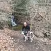 If you're in or around Ellicott City and looking for a place to walk you dog that is cool and scenic, try the Old Main Line Trail in the Daniels Area of the park. Unlike many other park areas, it is free! The address of the parking lot is 2092 Daniels Rd, Ellicott City. There is a dam and waterfall directly across from the parking lot. Facing the dam, walk upstream to your left along the street, and you'll see another small parking lot used by kayak'ers to put their boats into the Patapsco. The Old Main Line trail starts there. You'll have to cross a small stream (barely an inch or two of water) to get onto the trail. The trail is mostly packed crushed stone and/or dirt, and is very flat. There will be some muddy puddles after a big rain. There are trails branching off the main trail that follow the edge of the river. It's very scenic and quiet -- with woods, the river, and granite outcroppings. There are picnic tables adjacent to the parking lot. Best of all, our dogs did not pick up any ticks!