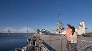 Charleston, South Carolina, is noted for its colonial and antebellum mansions, world-class restaurants and historical sites related to the Revolutionary War, Civil War and World War II. But the most popular tourist attraction of all is the Patriots Point Naval & Maritime Museum in Mount Pleasant. Located at 40 Patriots Point Road, at the mouth of the Cooper River in Charleston Harbor, across from Charleston, it was established in 1976 with the World War II aircraft carrier USS Yorktown as its centerpiece. It also is home to the Patriots Point Museum, a fleet of National Historic Landmark ships, the Cold War Memorial, the only Vietnam Experience Exhibit in the United States and the Congressional Medal of Honor Society and its Medal of Honor Museum. It also serves as an embarkation point for Fort Sumter tour trips. The USS Yorktown dominates the 350-acre site. Open to the public from 10 to 4 daily, it was decommissioned in 1970 after being awarded 11 battle stars and a Presidential Unit Citation in the Pacific during World War II and five battle stars for service off Vietnam in 1965-1968. Other ships on display are the USS Laffey, the most decorated U.S. destroyer in World War II, and the USS Clamagore, an iconic Cold War submarine and the only Guppy III submarine preserved in the United States. There are 28 naval aircraft on display on the USS Yorktown's flight deck and its hangars, including a McDonnell Douglas F-4 Phantom II, Grumman F-14 Tomcat, F6F Hellcat, F4F Wildcat, Douglas A-4 Skyhawk, FG-1D Corsair, Dauntless, Avenger, Grumman F-9 Cougar, Grumman A-6 Intruder, F/A-18A Hornet, three helicopters and an anti-submarine Drone. The Vietnam Experience brings the history of the Vietnam War to life through holograms in an exciting 3-D production set in a U.S. Marine Corps artillery fire base during the Tet Offensive and the Battle of Khe Sanh in 1968. Don't miss the Medal of Honor Museum, which features interactive exhibits that tell the stories of brave Americans from the Civil War to World War I to World War II to Iraq to Afghanistan. Patriots Point attracts nearly 300,000 visitors each year and has attracted over 11 million visitors while becoming the most popular tourist attraction in South Carolina.