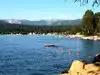 Beautiful lake, several nice beaches, roped off swimming area, reasonably priced canoe, kayak and paddle board rentals. Beautiful mountain scenery