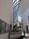 The outdoor watergarden. The ocular opening on the top floor, looking through it and it it....viewing from both sides. The museum is both a visual delight as well as a learning experience.