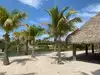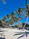 Bring plenty of sunscreen, food and water. The island has nothing but palm trees, sand, surf, birds and green lizards. Boats come in selling pizza and ice-cream. No chair or umbrella service. Snorkeling is good around the rocks and docks. Bring gear or rent before coming. Also you have to pay for a charter ferry or water taxi. The warm clear water was calm and inviting.