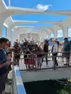 After the movie, we got on the launch taking us to the memorial. It was organized well and no problems with motion sickness which I'm prone to. Once we arrived you could feel the solemnity of the memorial and were respectfully quiet as we wandered through it. My daughter took pictures and lingered at the sides to look at the submerged USS Arizona as I whispered the details of the attack and the remains laying below us. The amount of time we were allowed, about 1/2 hour, was just right as we boarded the launch again.