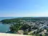 memory serves me correctly from our last visit, like 20 years ago, on a clear day, you can not only see Canada, Cedar Point, and I think a couple of the borders of some of our northern states as well. The history an importance of this monument is wonderful to learn, and remember as its part of our rich heritage for America! We considered going back and try to get up to the top, before we left the island, but there were so many people and golf carts, we could not get near it. Obviously, its a popular stop! It's beautiful to see