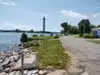 When visiting this memorial, I was impressed by the width and more importantly, the height! It is set by the water in an area that allows many to visit without concern for crowding. There is also a stone wall to rest on and a cemented walking path by the bay to enjoy as well. It can be seen from many locations on Small Bass Island to provide an array of photos with different points of view.