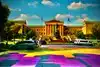 The Museum of Art is located at Eakins Oval upon the north east end of the Benjamin Franklin Parkway aka the Museum Mile. It opened in 1876 and has the most impressive collection of 240,000 objects spanning 2000 years including paintings, sculptures, furniture, decorative arts and even an armor collection. It has an impressive frontage with a striking pediment sculpture on the north wing (right side) of the east entrance. The steps leading up to the entrance were made famous from the film 'Rocky' in 1976. The museum is one of many along the museum mile, others include, Rodin Museum, The Franklin Institute, Academy of Natural Sciences and The Barnes Foundation.