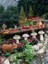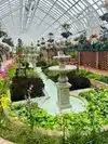 In the greenhouse you will find a dessert room, victorian room (pond with reflecting colored lights), broderic room (called embroidery of the earth), sunken garden room (fountains and sunken flower beds), galley room (learning center for kids), south conservatory (seasonal plants), palm court, fern room, serpentine room (changes seasonally), orchid room, stove room (butterfly forest room that is open from spring to fall), east room (streams and waterfalls) and an outdoor japanese courtyard garden.