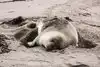The elephant seals were either playing, sleeping, making fun noises, walking out to sea, or throwing sand on each other.