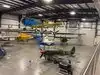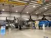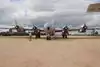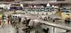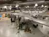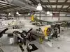 Outside are stacked an incredible array of propeller and jet airplanes including a B 52., helicopters and more.