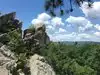 Visited this small state park to do some hiking. We did the Pole Steeple trail. It is a moderate difficulty mostly uphill climb and not too long, only about 1 mile up. It is rocky in most spots, but was not too bad. The pinnacle has absolutely stunning views. The rock formations are a bit tricky to navigate in spots, so check your footing carefully. Great place to have a picnic lunch sitting on the rocks overlooking the small lake and forest terrain. There are a few other trails, that we did not check out, but may return someday.